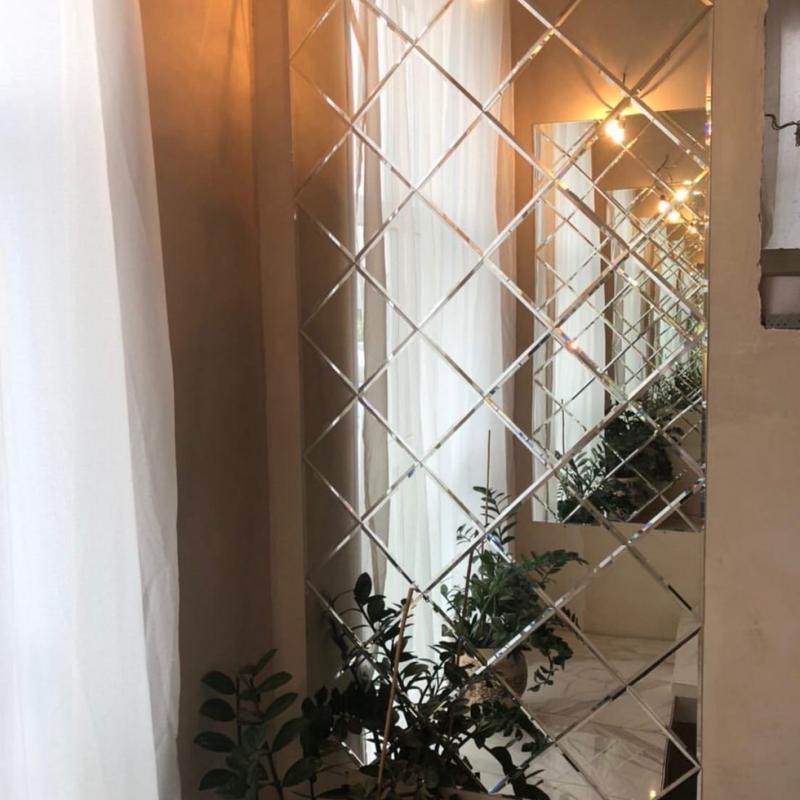 Использована серебристая зеркальная плитка "вытянутый ромб".
